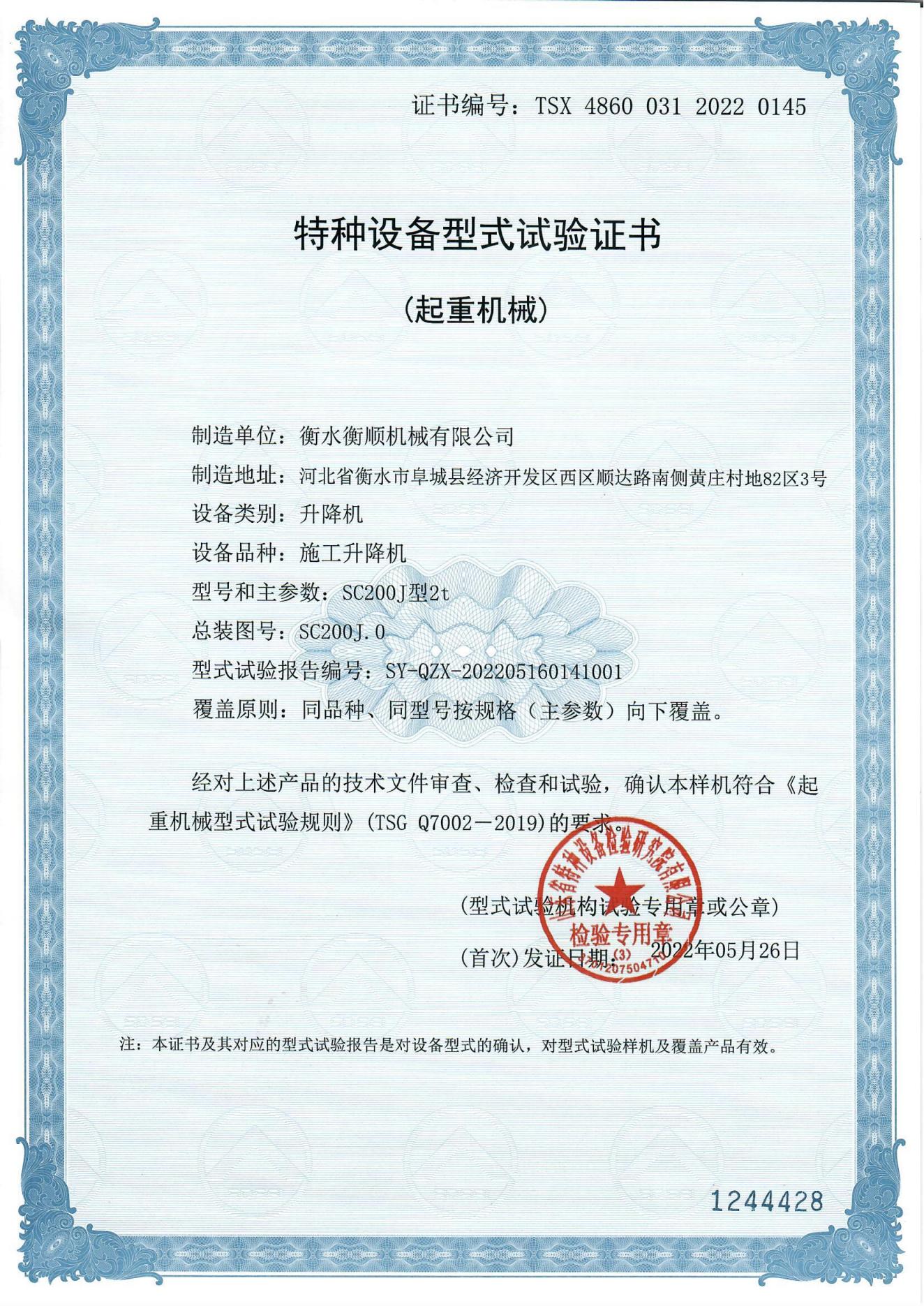 衡水衡順機械有限公司是生產SC200/200施工升降機、SC1.2t/1.2t施工升降機、SSE150施工升降機、SS80/80施工升降機 、施工升降機配件等建筑機械的廠家。